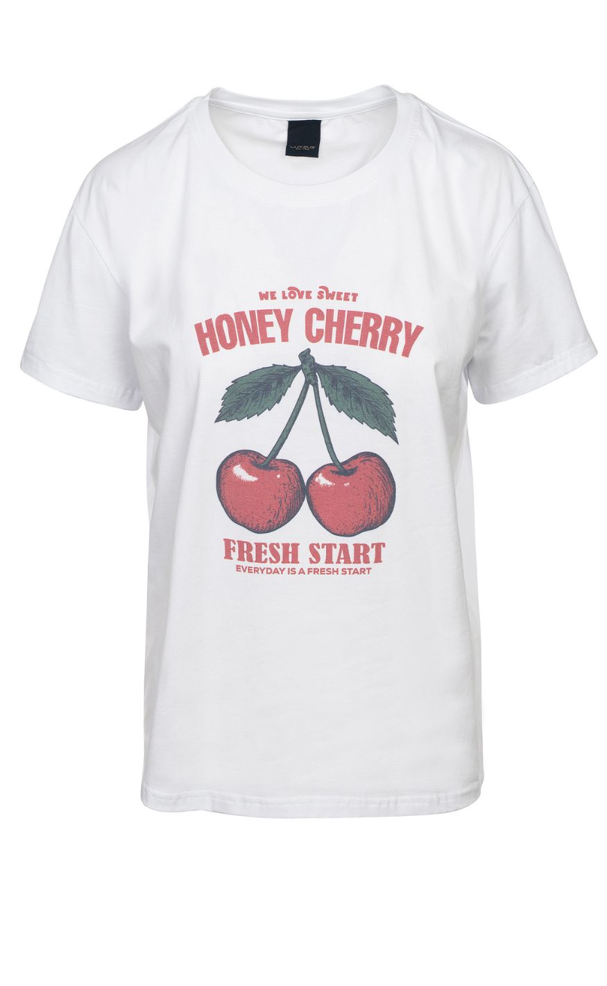 T-shirt fra Luxzuz Cool t-shirt med kirsebær print på forsiden. Blød og behagelig kvalitet og et stilfuldt udtryk.