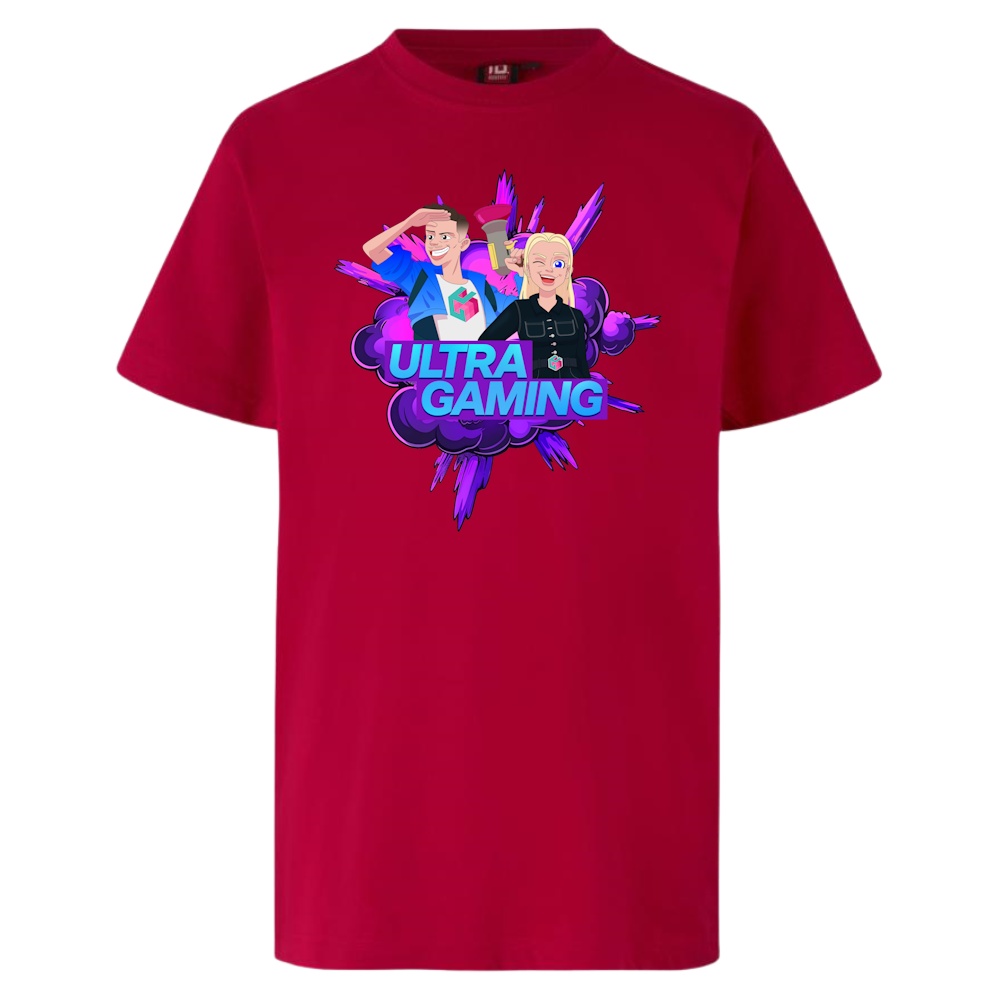 Gør din garderobe ekstra gamer-venlig med den officielle Ultra Gaming Tee – RødDenne fede t-shirt er perfekt til fans af Ultra Gaming på YouTube og DR Ultra, der vil vise deres støtte til Sigge og Maria i en iøjnefaldende farve. På fronten finder d